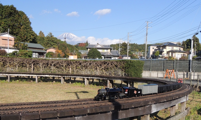 冬に向かう季節の庭園鉄道の名物!朝の富士山と一番列車です。↓